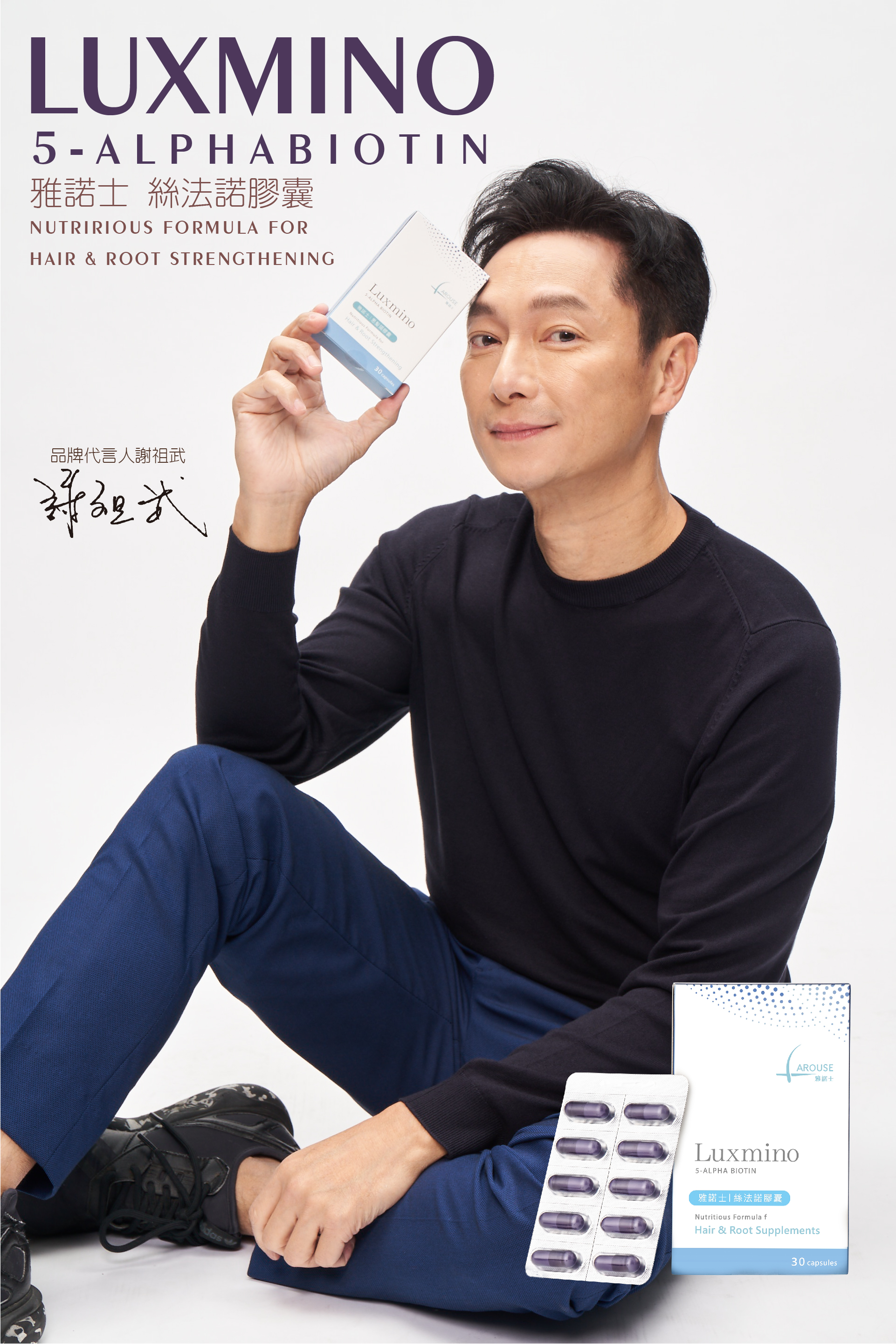 不老男神謝祖武也非常重視毛髮健康,雅諾士絲法諾膠囊(Luxmino),內含豐富的胺基酸,為頭髮補充必需的營養,每日建議用量1顆。