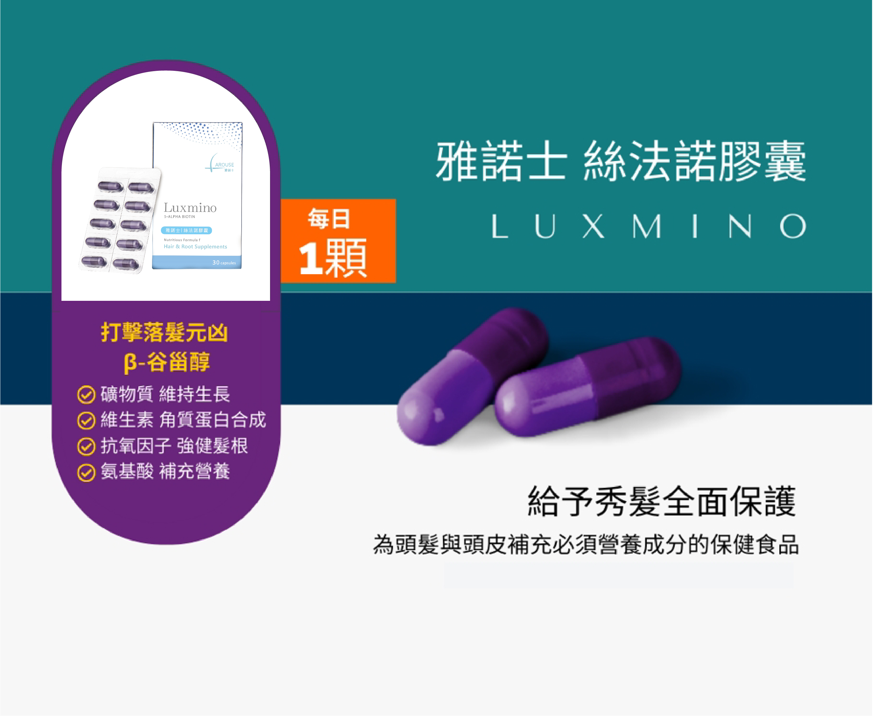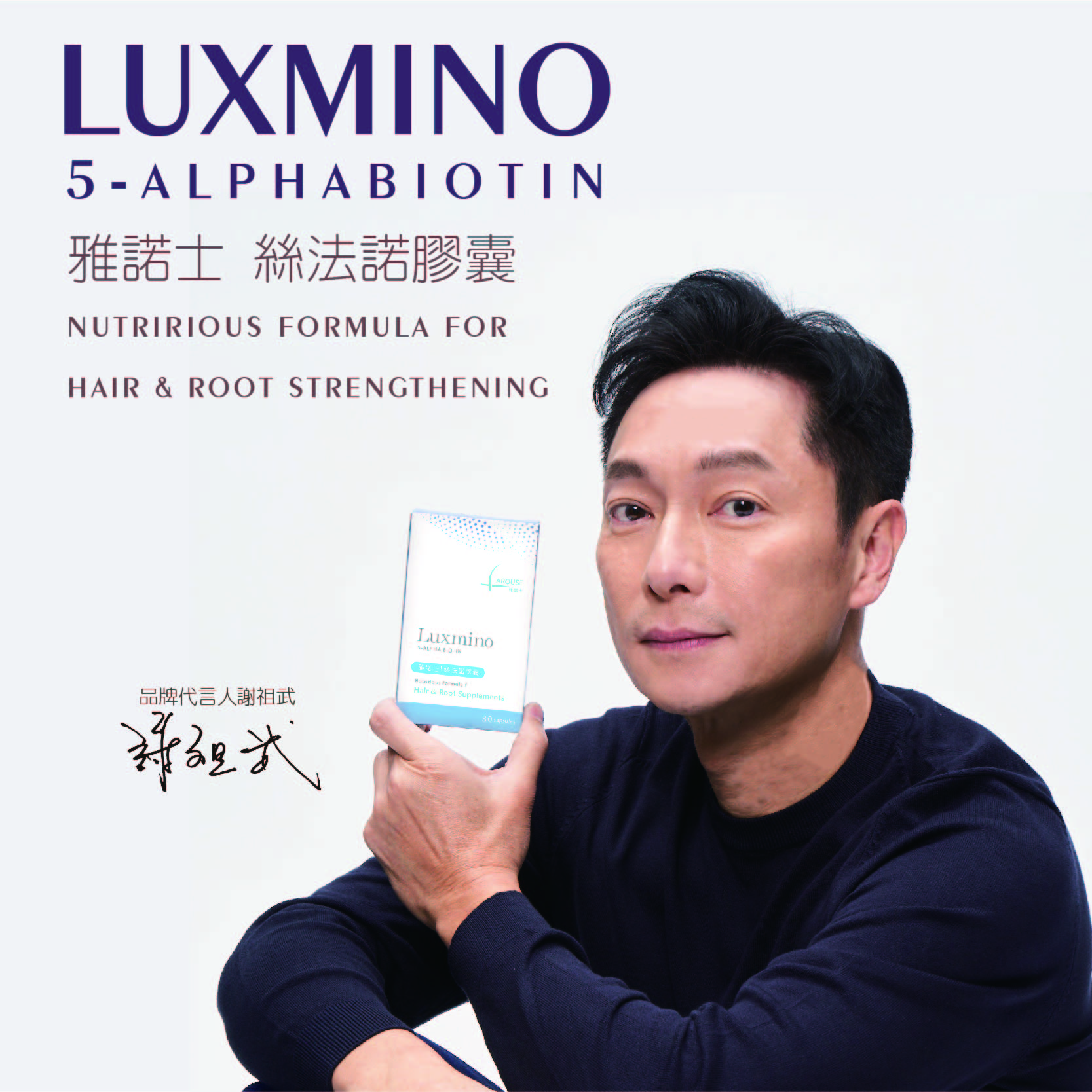 不老男神謝祖武也非常重視毛髮健康,雅諾士絲法諾膠囊(Luxmino),內含豐富的胺基酸,為頭髮補充必需的營養,每日建議用量1顆。